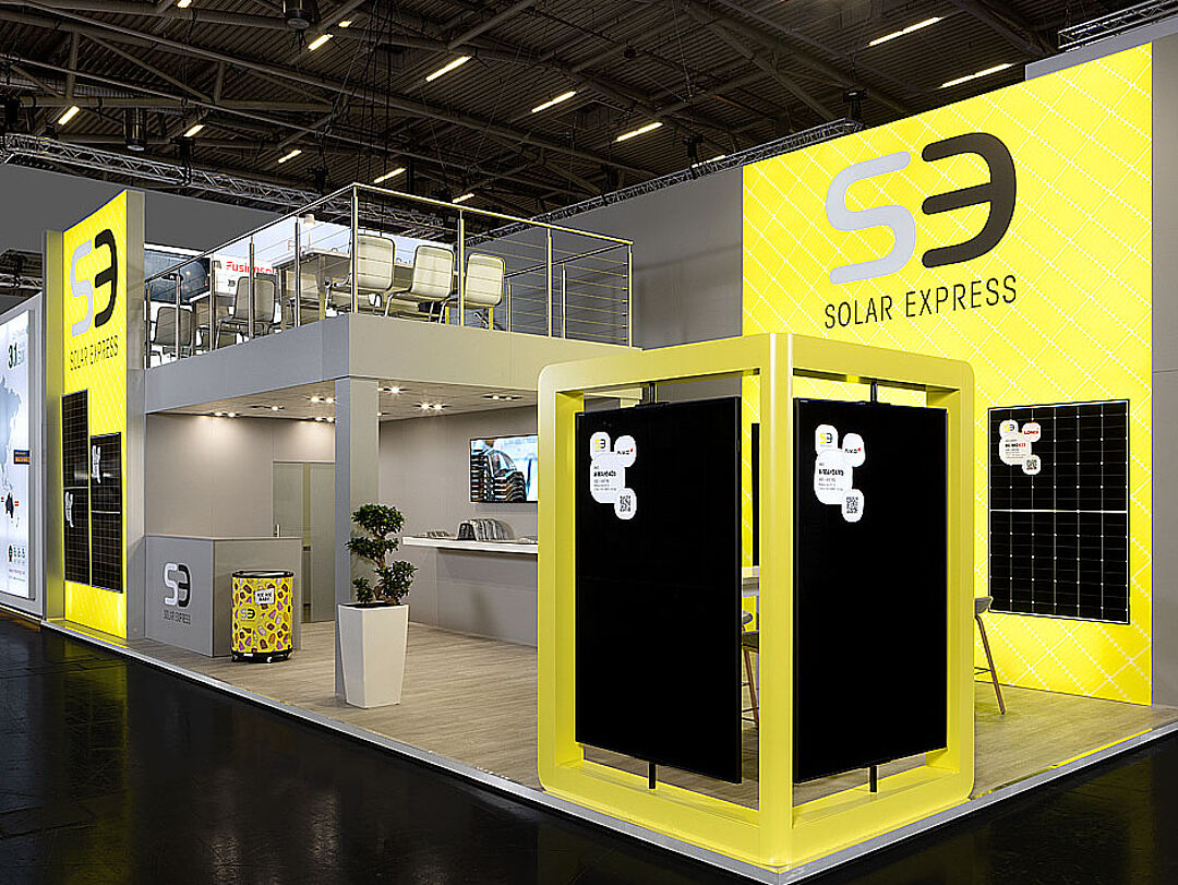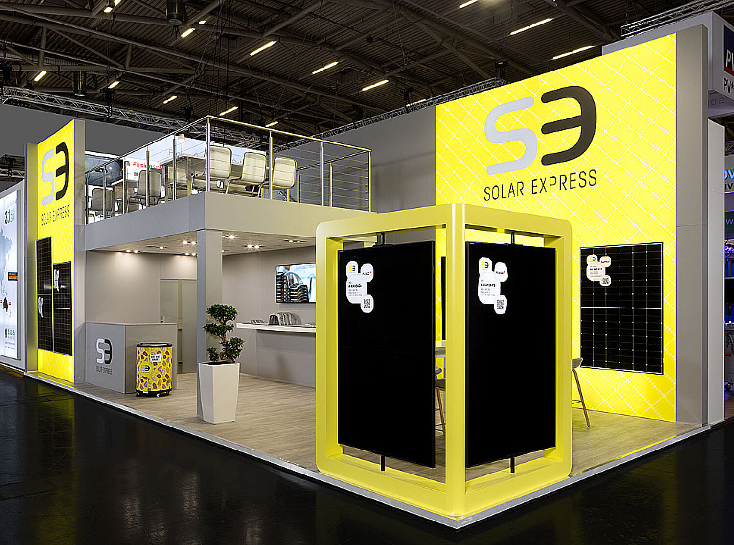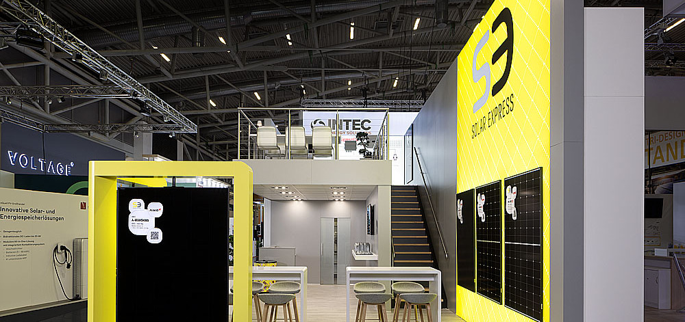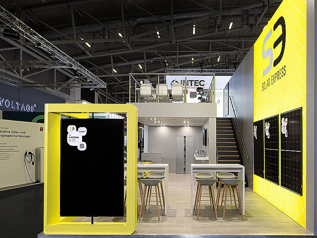 Der seit vielen Jahren erfolgreiche Dienstleister für Solartechnik aus Rostock präsentierte sich auf der Intersolar in München. Das Standkonzept als Doppelstock war hanseatisch-authentisch: Klare Formensprache ohne Schnörkel, Konzentration auf Produkte und Gespräche. Der konsequente Einsatz von LED-Leuchtwänden mit vollflächiger Grafik erzielte die gewünschte Aufmerksamkeit der Besucher. Im Obergeschoss wurden auf der Leuchtwand interessante Anwendungsbeispiele optisch attraktiv dargestellt. So führte dieser Messeauftritt zu deutlich mehr Gesprächen, als vom Aussteller erwartet.