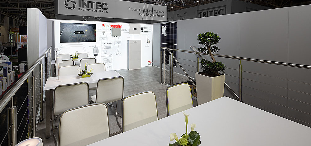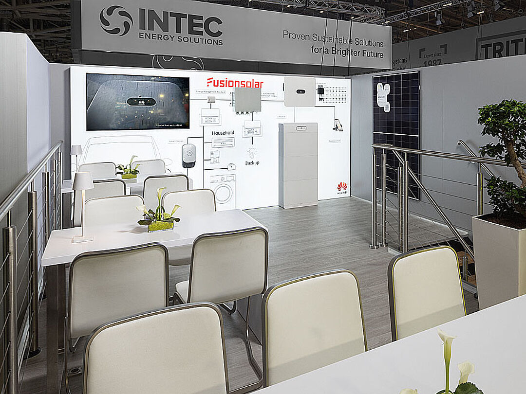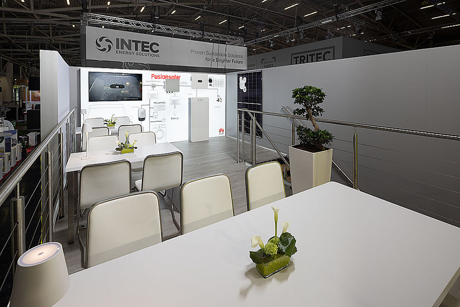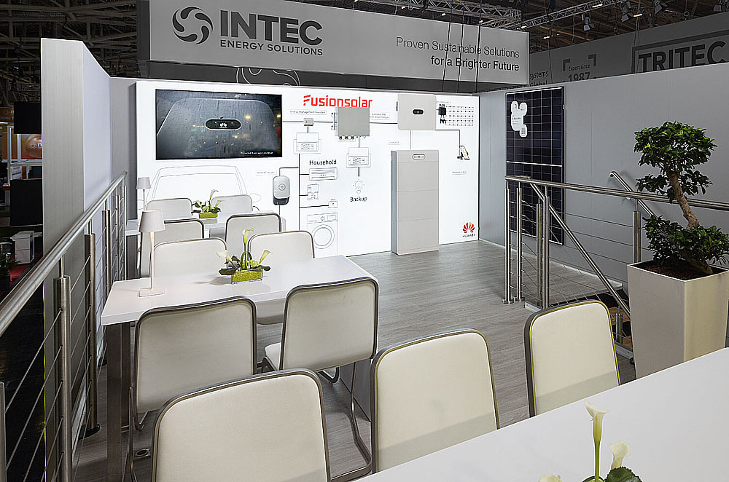 Der seit vielen Jahren erfolgreiche Dienstleister für Solartechnik aus Rostock präsentierte sich auf der Intersolar in München. Das Standkonzept als Doppelstock war hanseatisch-authentisch: Klare Formensprache ohne Schnörkel, Konzentration auf Produkte und Gespräche. Der konsequente Einsatz von LED-Leuchtwänden mit vollflächiger Grafik erzielte die gewünschte Aufmerksamkeit der Besucher. Im Obergeschoss wurden auf der Leuchtwand interessante Anwendungsbeispiele optisch attraktiv dargestellt. So führte dieser Messeauftritt zu deutlich mehr Gesprächen, als vom Aussteller erwartet.